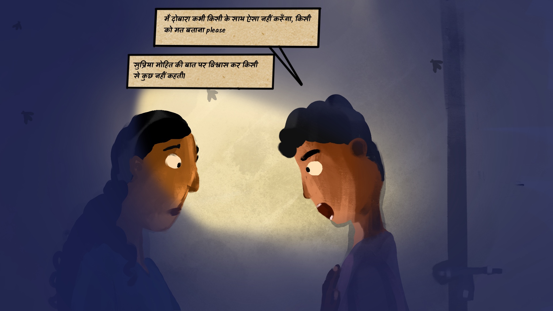 मोहित सुप्रिया से बिनती करता है की वो उसके इस हरकत के बारे में अपने माता पिता से कुछ ना कहे, क्योंकि वो उनका विश्वास नहीं तोड़ना चाहता। मोहित के लिए ज़रूरी है की वो ऐसी कोई गलती ना करे जिससे उसके माता पिता के उम्मीदों को ठेस पहुँचे, ख़ासकर रोमांटिक और यौनिक बातों को लेकर। पर अब जब उससे गलती हो चुकी है तो वो यह बात छुपाना चाहता है ताकि उसके माता पिता का विश्वास बनाए रखेंक्या आप को लगता है की अपने माता पिता से गलती छुपाने से मोहित एक अच्छा लड़का बना रह सकता है?