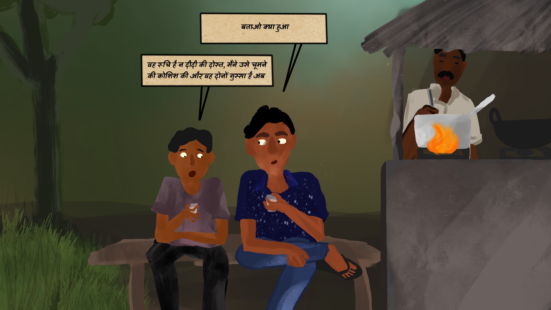 मोहित अपने व्यवहार के बारे में अपने चचेरे भई विक्रम से बात करना चाहता है। ऐसा इसलिए है क्योंकि विक्रम मोहित को इस स्थिति के बारे में खुलकर बात करने का आश्वासन देता है और इसलिए भी कि उसने अपने युवा दिनों में कुछ ऐसा ही अनुभव किया होगा।