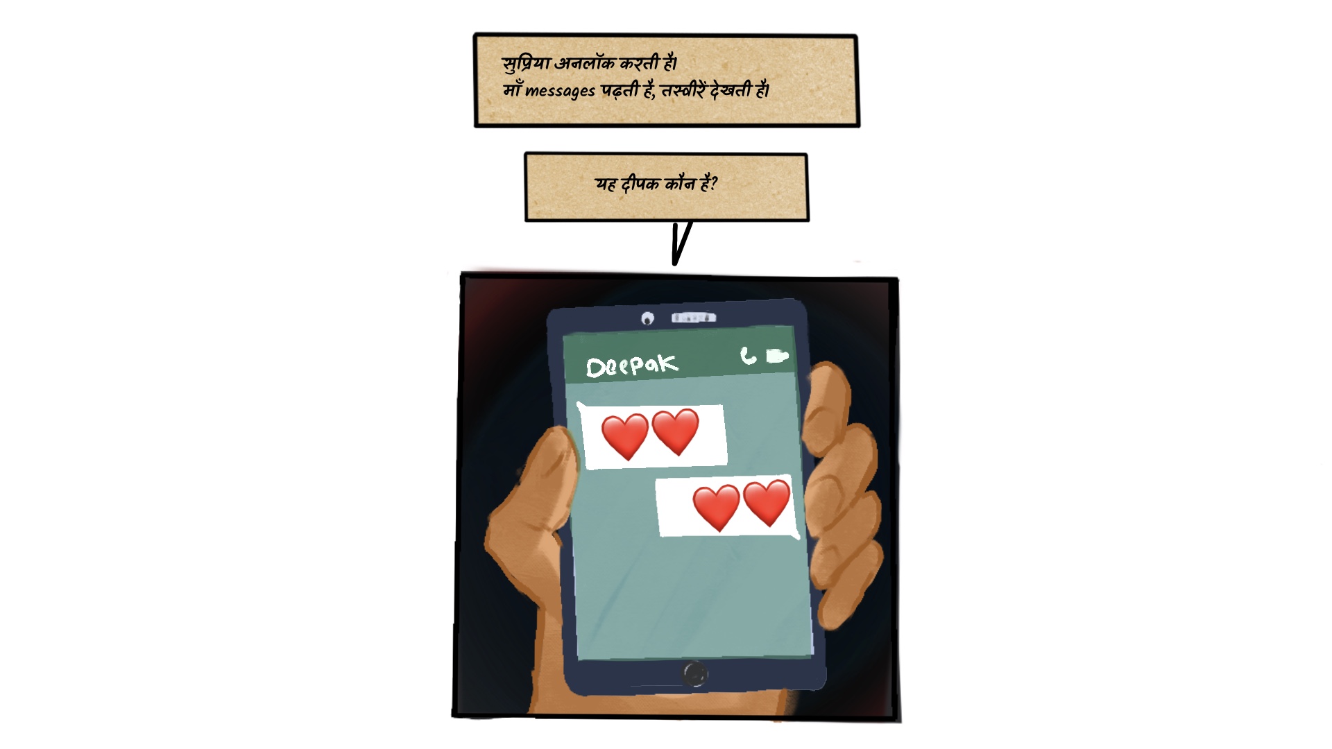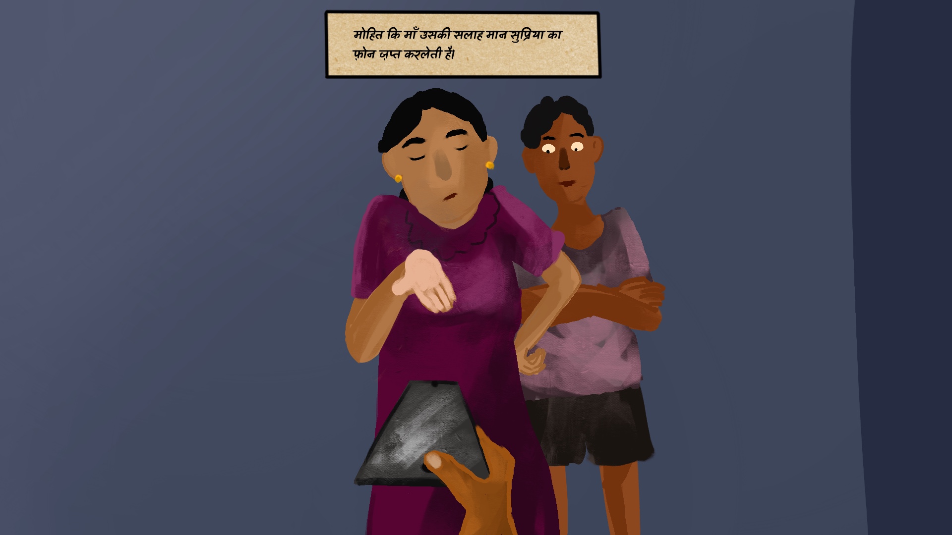 • मोहित स्थिति का उपयोग अपने व्यवहार से अपनी बहनों के व्यवहार की ओर ध्यान केंद्रित करने के लिए करता है क्योंकि एक पुरुष के रूप में उसे अपनी बहन से अधिक भरोसेमंद माना जाता है। ऐसा करने के लिए, वह उसका फोन जब्त कर लेता है जिसके जरिए वह उसे संदेश देता है कि गलत होने के बावजूद, उसके पास अधिक शक्ति है। और अगर वह मोहित को जवाबदेह ठहराने की कोशिश करेगी तो वह उसे सजा दिलाने के लिए अपनी शक्ति का उपयोग कर सकता है।