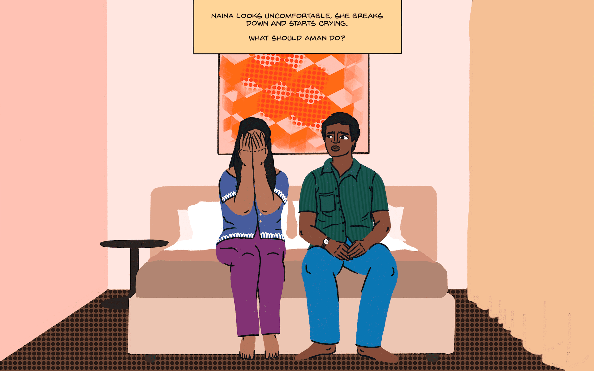 • Aman is trying to manipulate Naina into giving consent by telling her about the money and effort that went into preparing for this date. Pressuring someone into saying Yes is violent because their consent is not enthusiastic. Don’t you think Naina’s comfort should be Aman’s priority also?