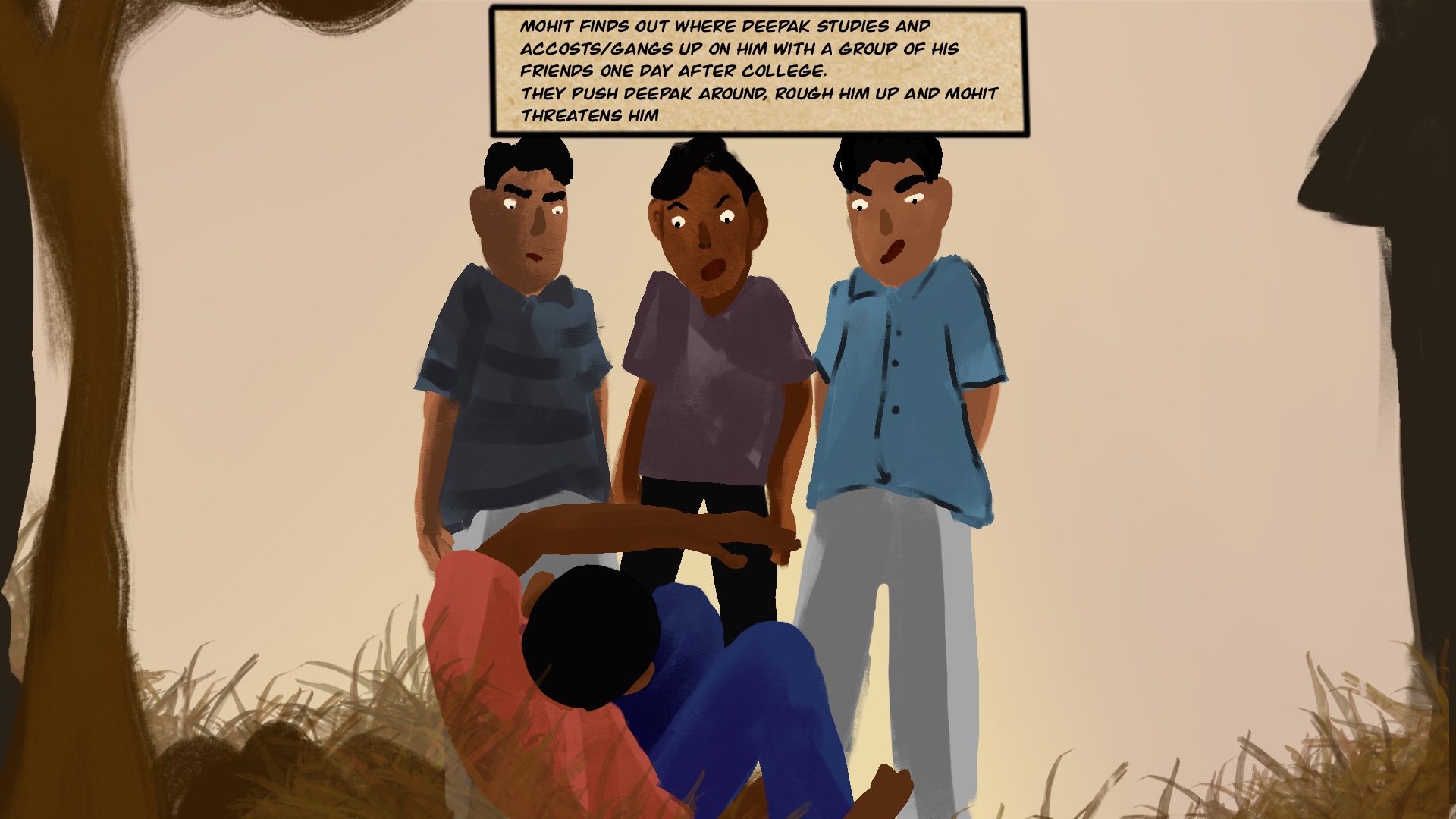 Mohit wants to teach a lesson to Deepak because he feels that his sister is not taking him seriously or obeying him. Therefore by threatening and beating up Deepak, Mohit is sending a message to his sister that she needs to take his approval. Do you think making his sister obey him would make Mohit the “man” he needs to be?
