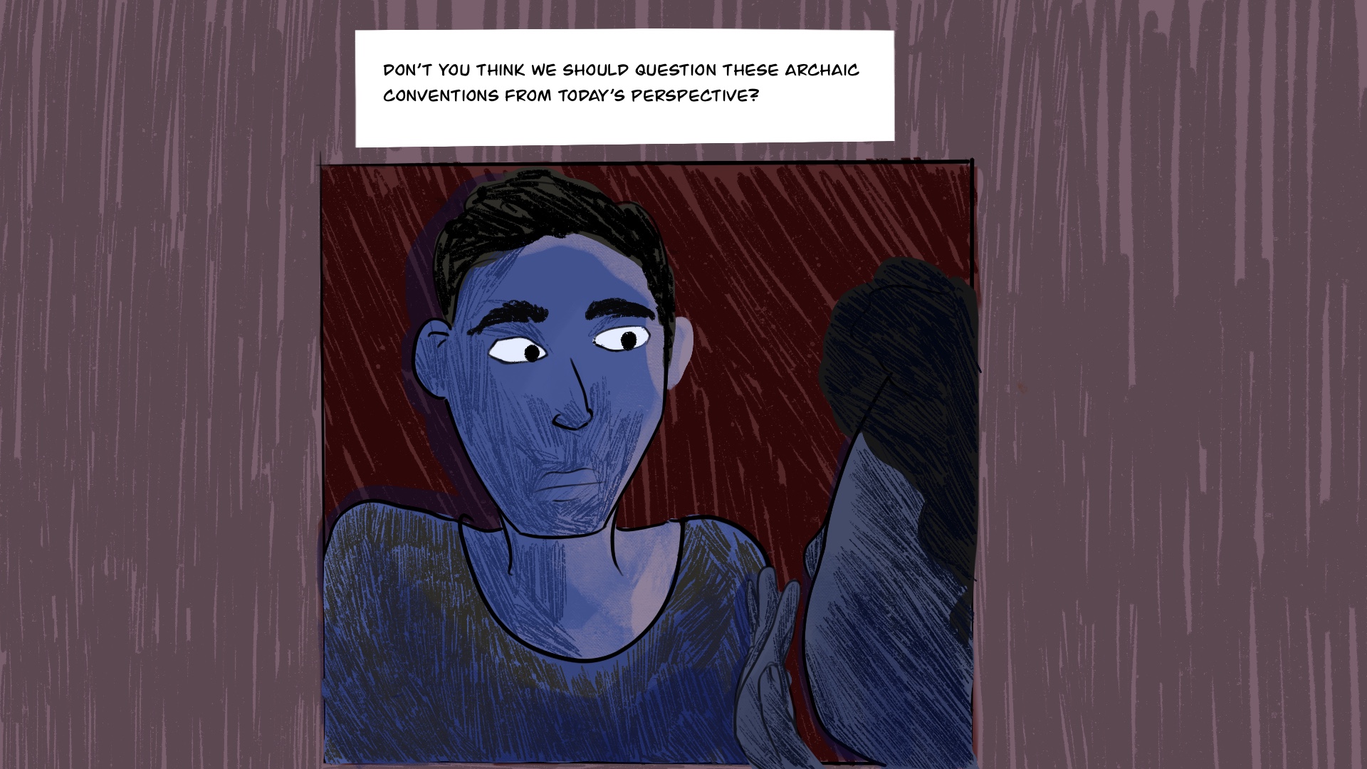 • Ajit says that he and Sakshi are consenting adults who are making their own choices. His question to Himanshu expresses their basic right to be together irrespective of the caste difference. By voicing his concerns of the caste differences, Ajit questions the need for upper caste men to act like protectors of the community which might result in facing violence later.