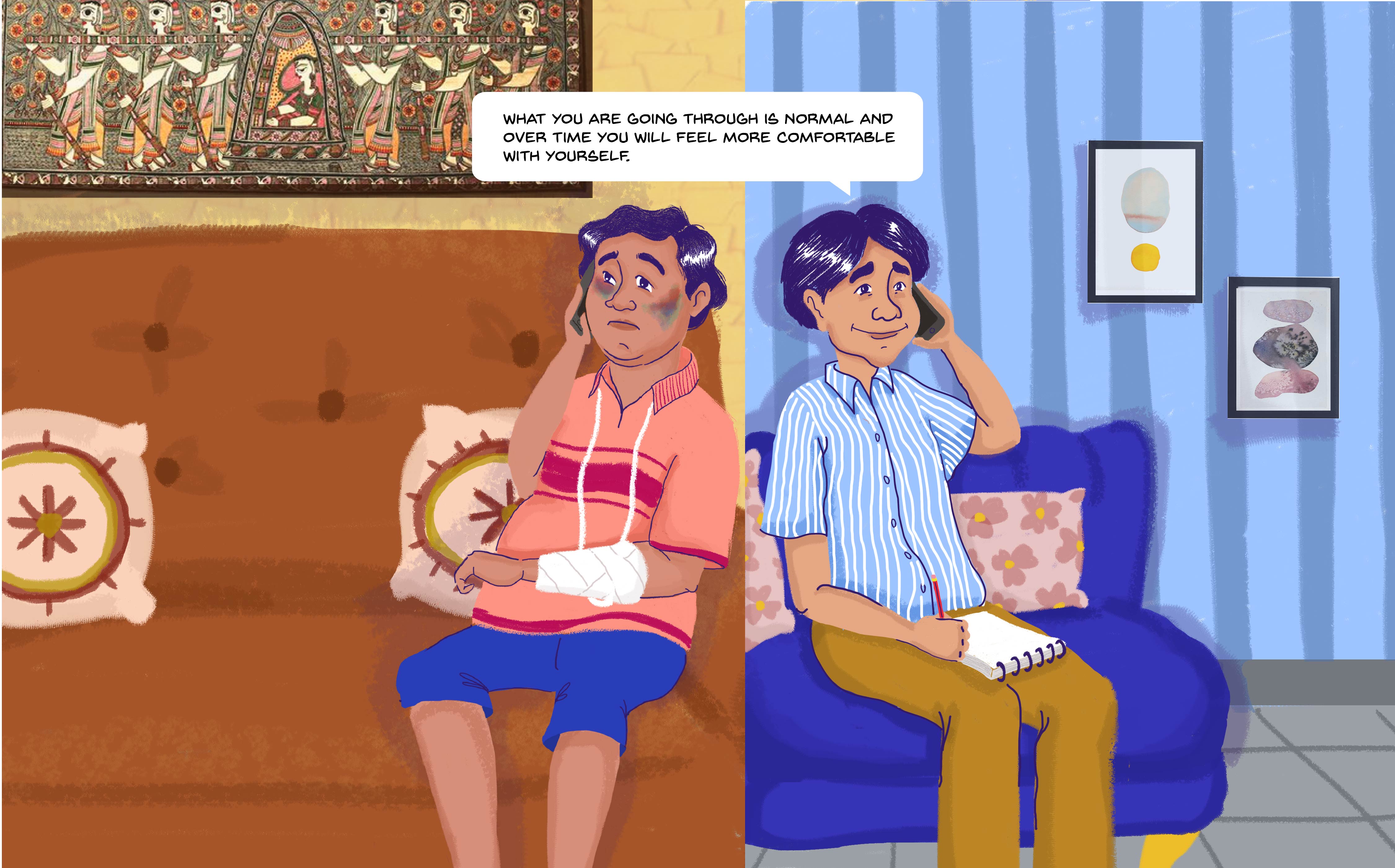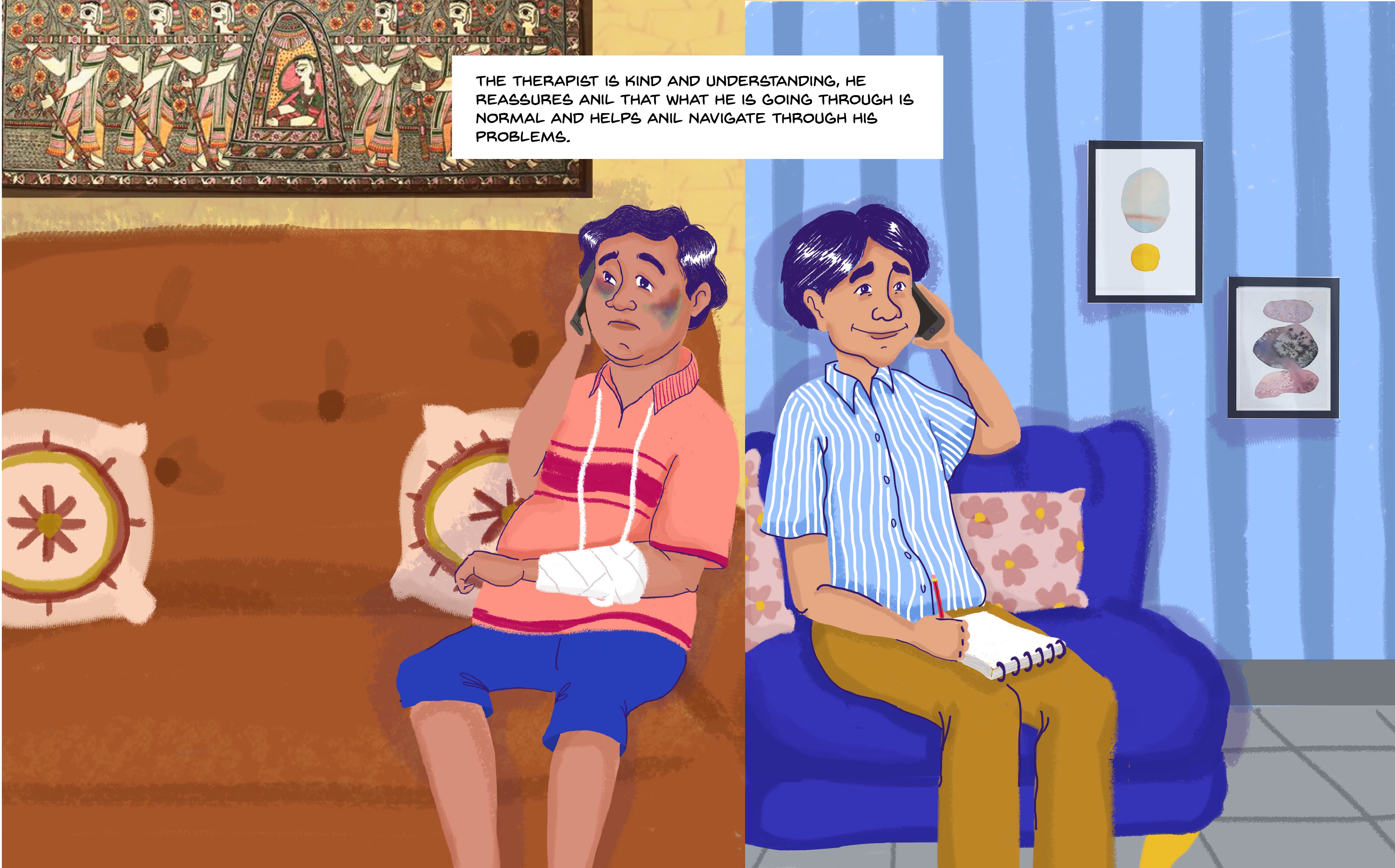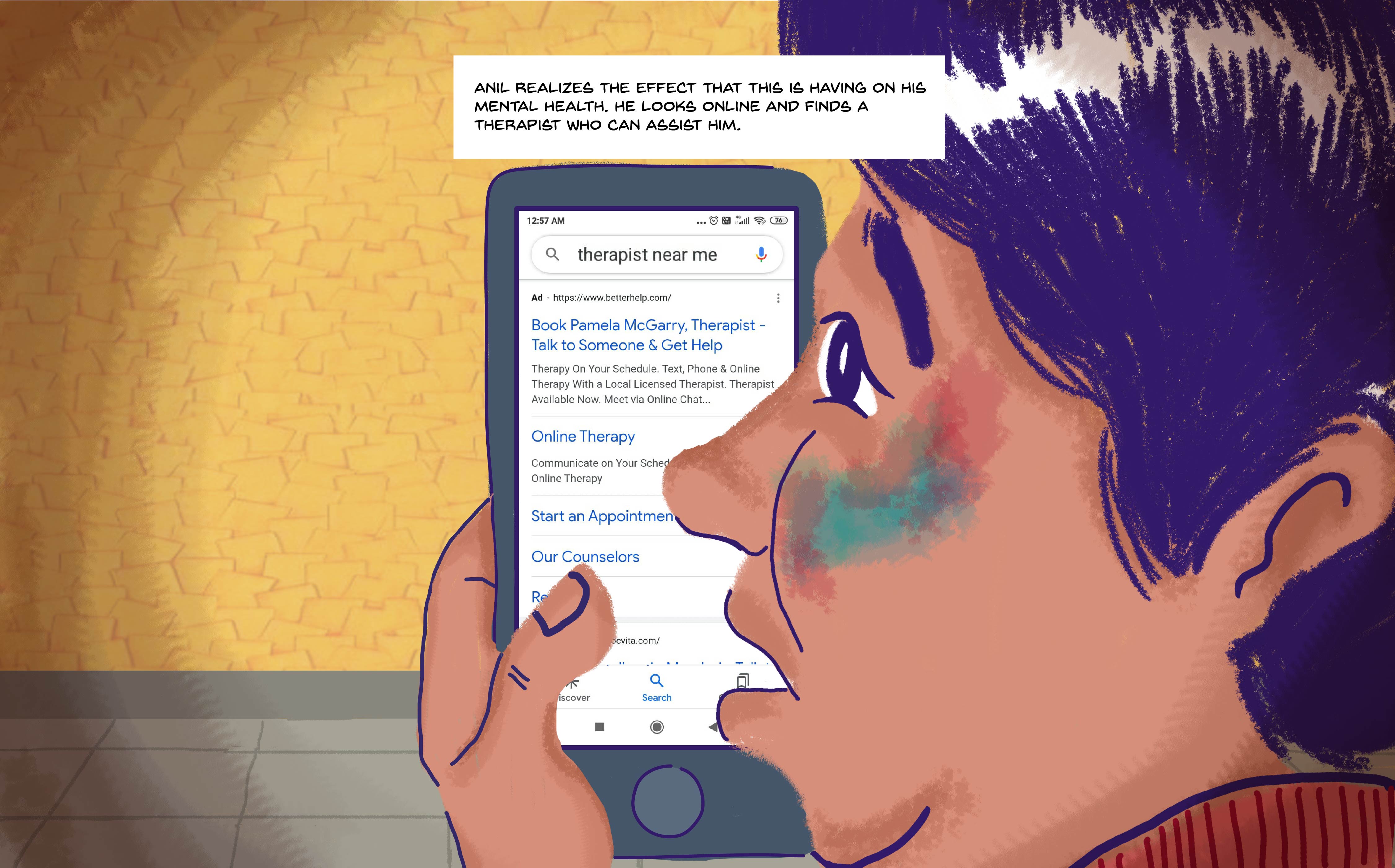 Social media often becomes an extension of real life in showing and maintaining one’s masculinity. Therefore, cyber bullying against Anil is in continuation of what he has been experiencing in real life. Due to this Anil has an option in choosing how he wants to deal with this situation including the option of going to the therapist - the only thing one should be considering while deciding this is to ensure he is comfortable with the decision that he takes.